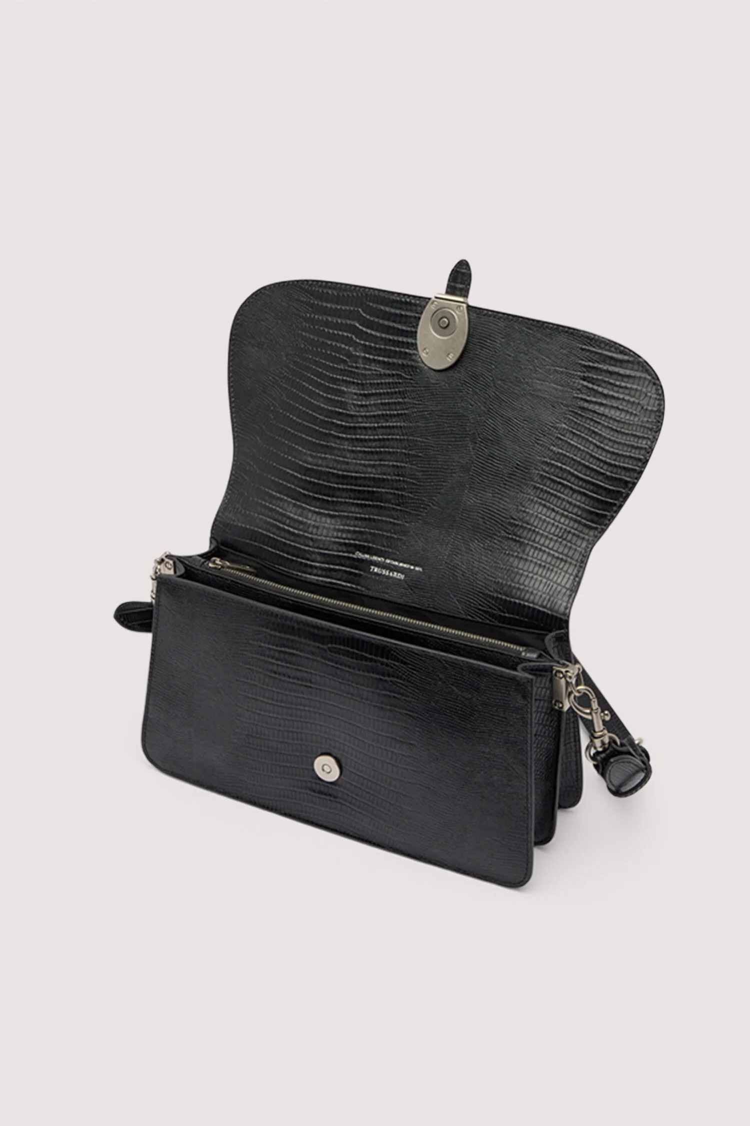 Velaria is a family of bags available in four different functions and sizes, which recalls the world of saddlery through its shape. The soft lines, contrasted with the bellows construction, provide elegance and functionality. A distinctive aspect is the metals, which increase its versatility. The reptile print material adds an additional code of authenticity and uniqueness to this accessory.